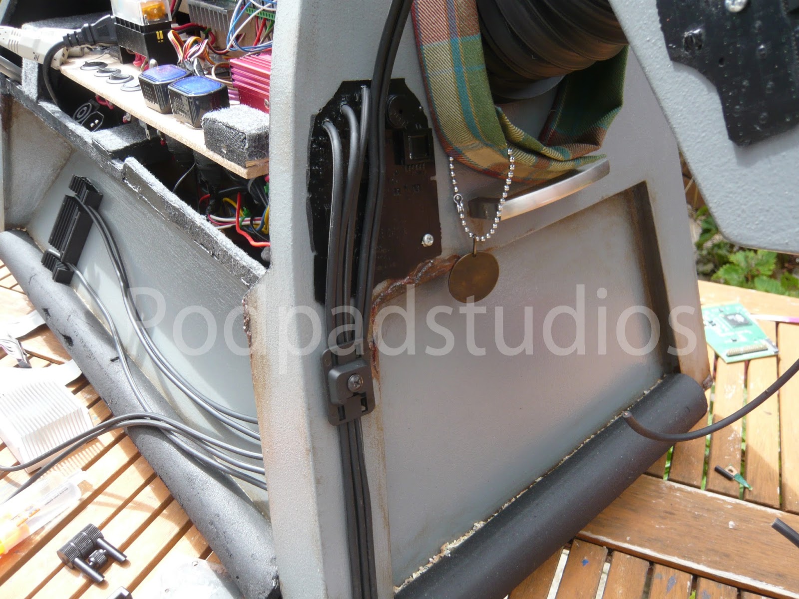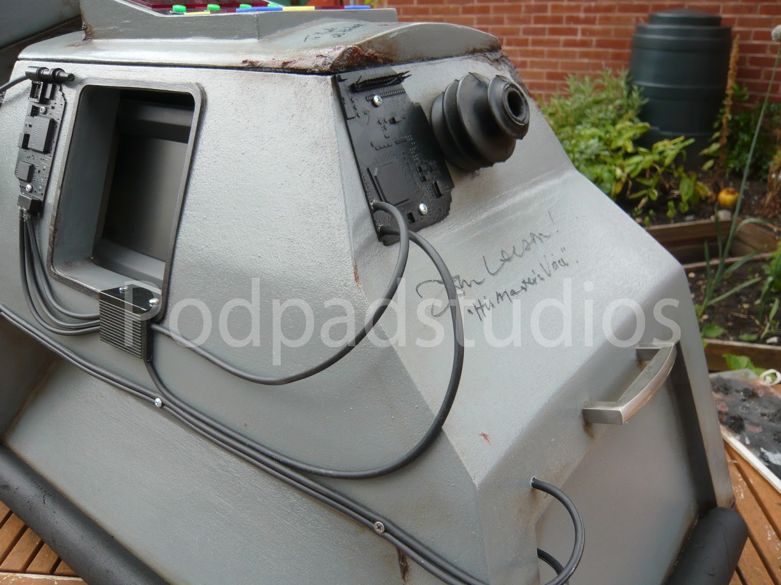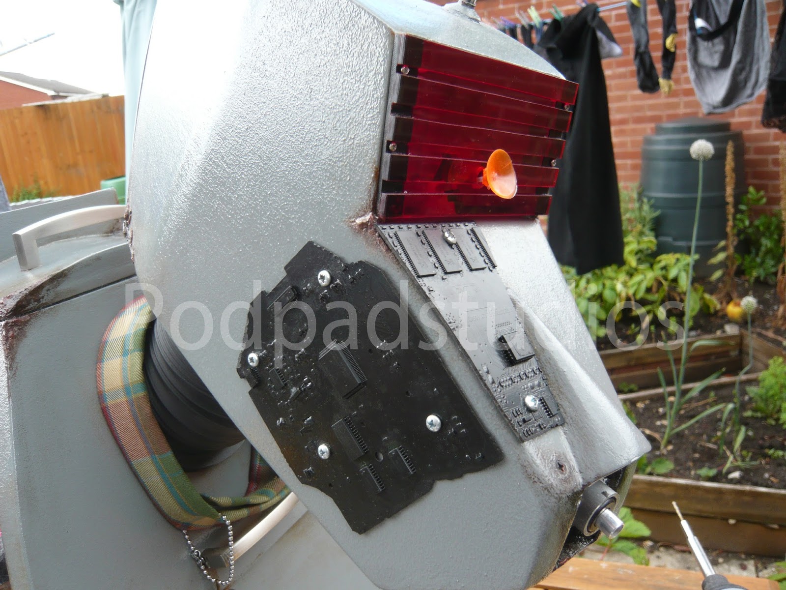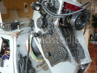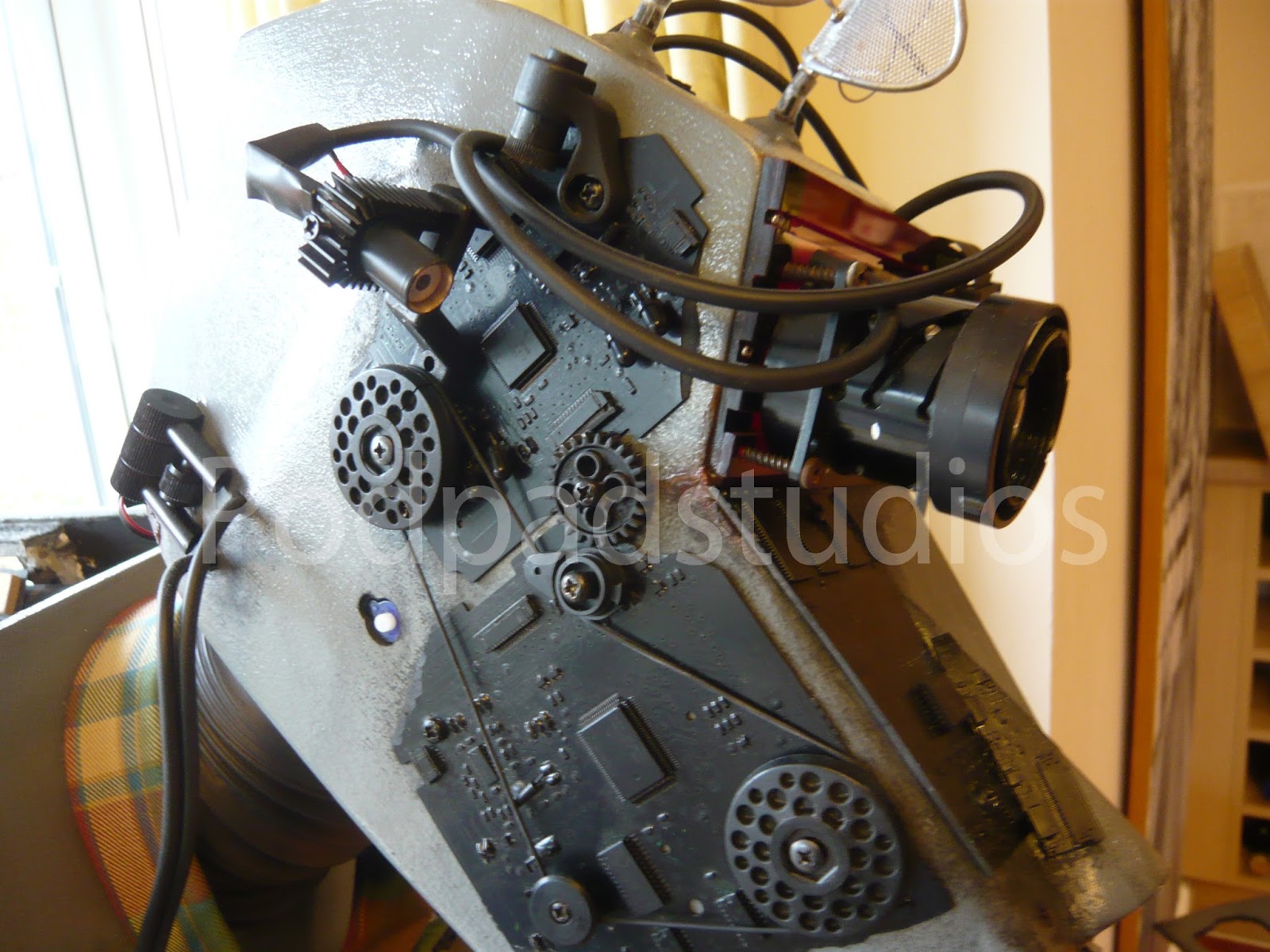 Sorry for all you K9 purists but it had to be done, I was board with the standard K9 and wanted something different. The Borg add ons are simply old computer circuit boards painted Black and added to K9. I cut out a few pannels here and their to give a more assimilated look and added a number of micro servos which also provide the Borg servos implant look. All the servos including the ears run from a Pololu Maestro board and run a simple sequence, it saves me truing to operate a further six servos from the radio.I have also added some new LED lighting, best bet is to check out the video to see him at an recent event. I will upload some more mood photos in the next week or so.