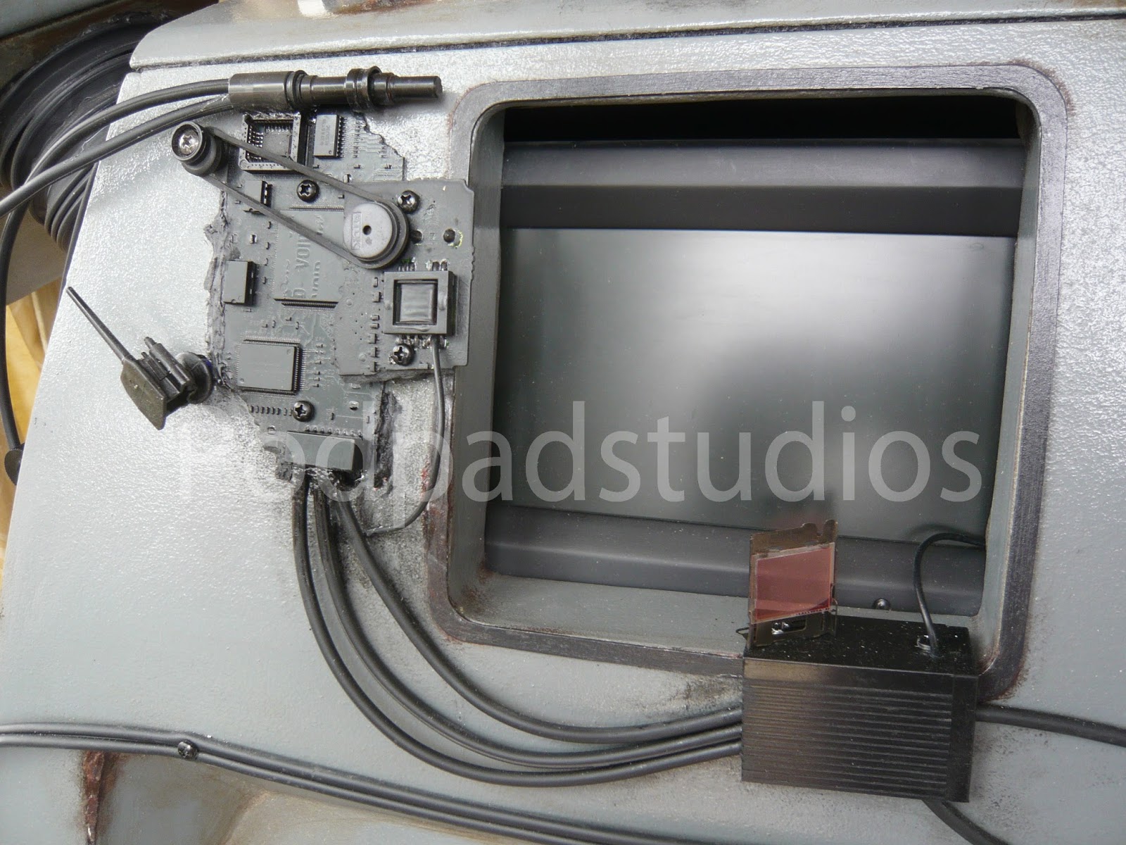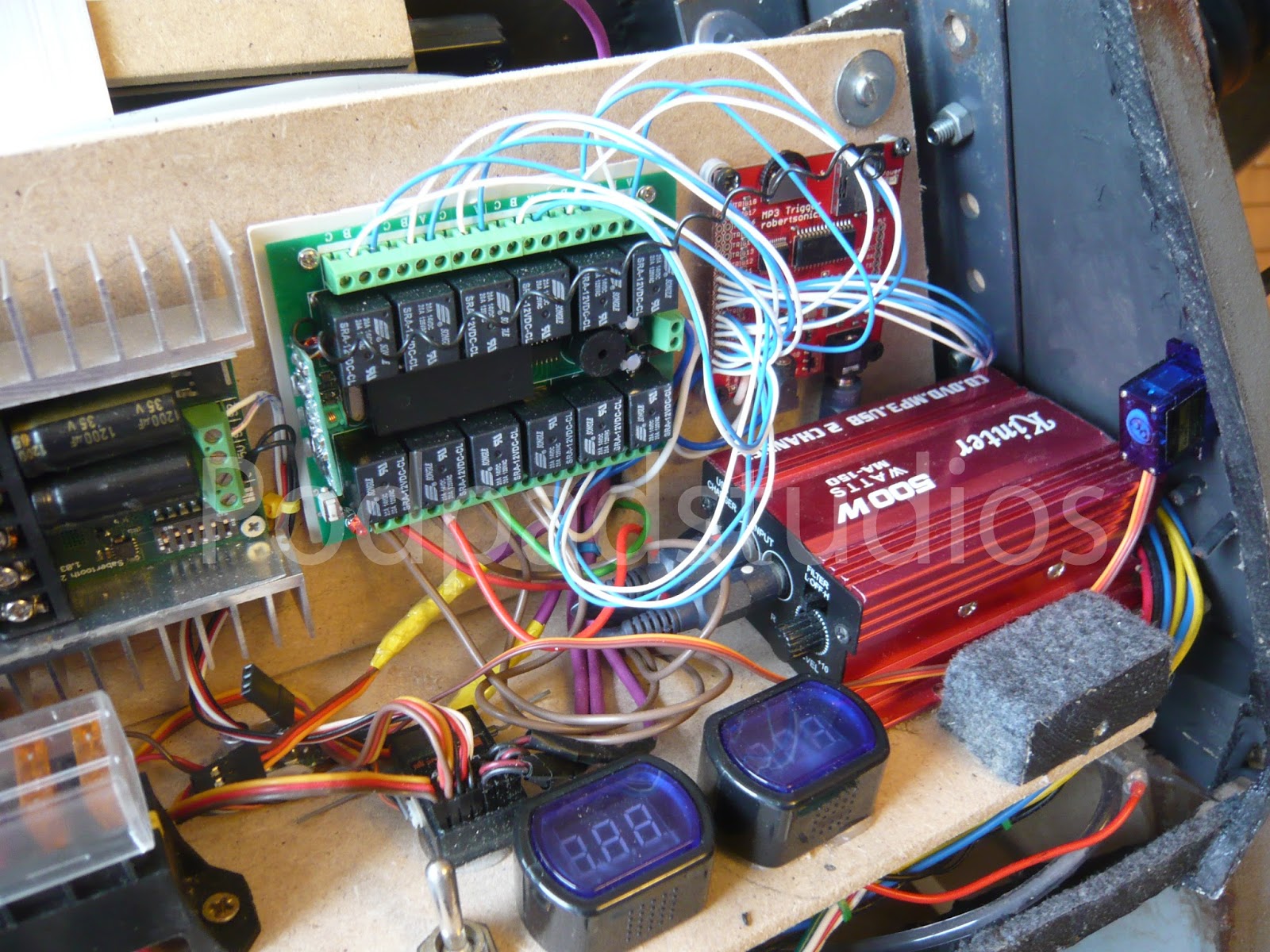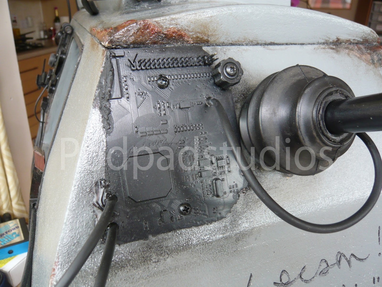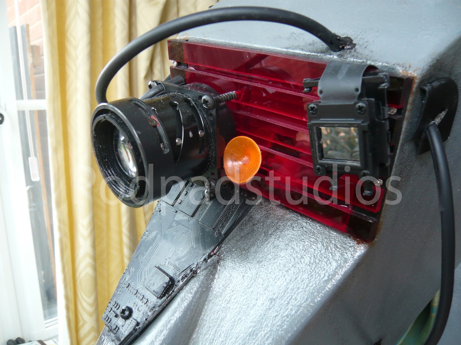 Sorry for all you K9 purists but it had to be done, I was board with the standard K9 and wanted something different. The Borg add ons are simply old computer circuit boards painted Black and added to K9. I cut out a few pannels here and their to give a more assimilated look and added a number of micro servos which also provide the Borg servos implant look. All the servos including the ears run from a Pololu Maestro board and run a simple sequence, it saves me truing to operate a further six servos from the radio.I have also added some new LED lighting, best bet is to check out the video to see him at an recent event. I will upload some more mood photos in the next week or so.