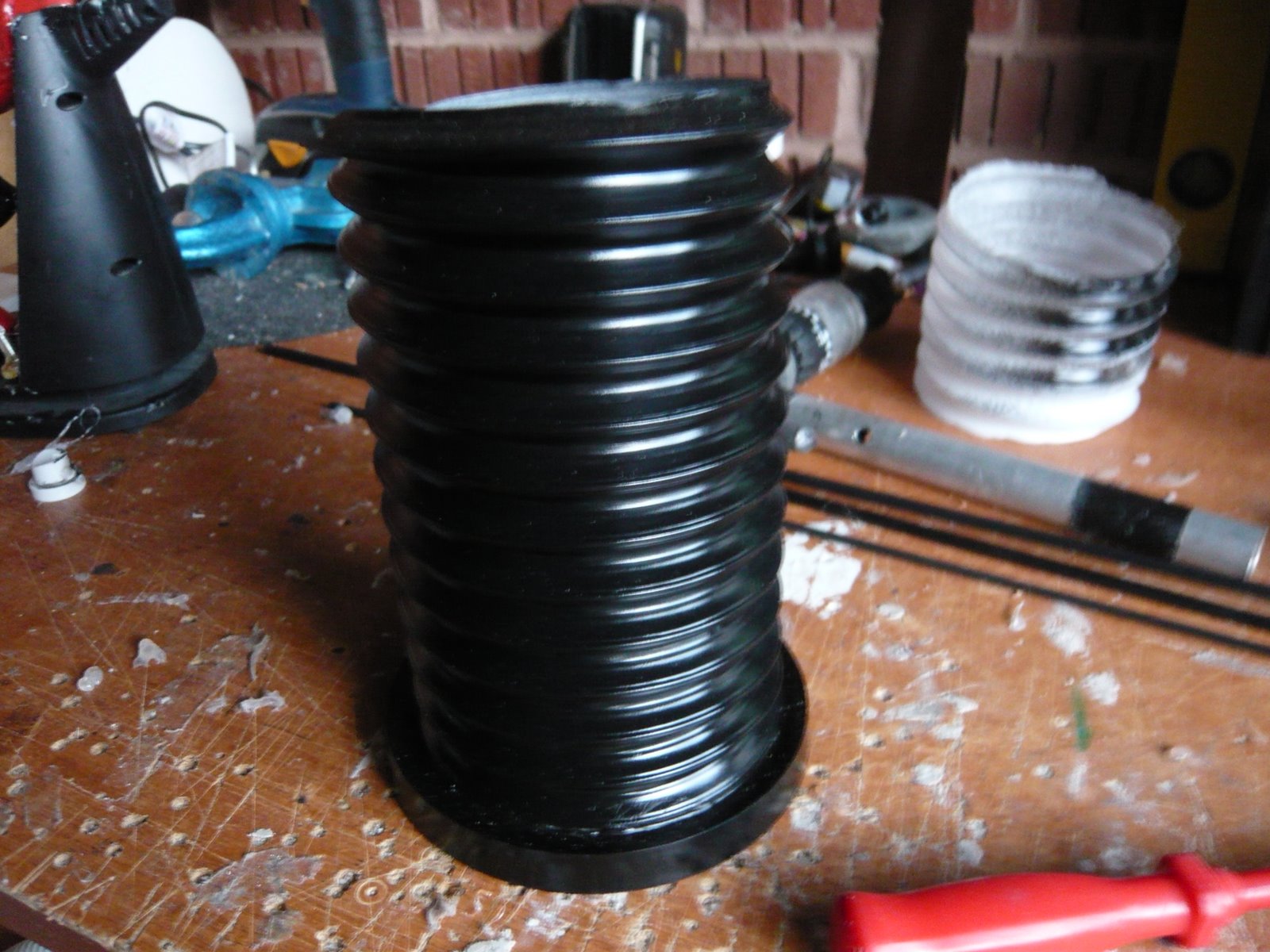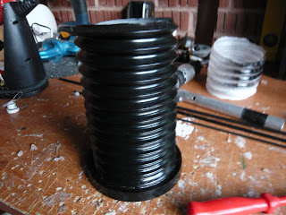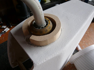 The neck tube was a pain to find but eventually I found this flexible tubing from Wicks, which seems to look the part. I have glued collars onto the body and head and the neck tube will eventually be glued to each of these. I am hopeing it will be flexible enough to allow the head to move freely although at this time I have not worked out how I am going to do this. The head movement will need a serious motor to drive it as it is starting to get quite heavy. I think I will drop the idea of the head moving side to side as it will add even more weight.