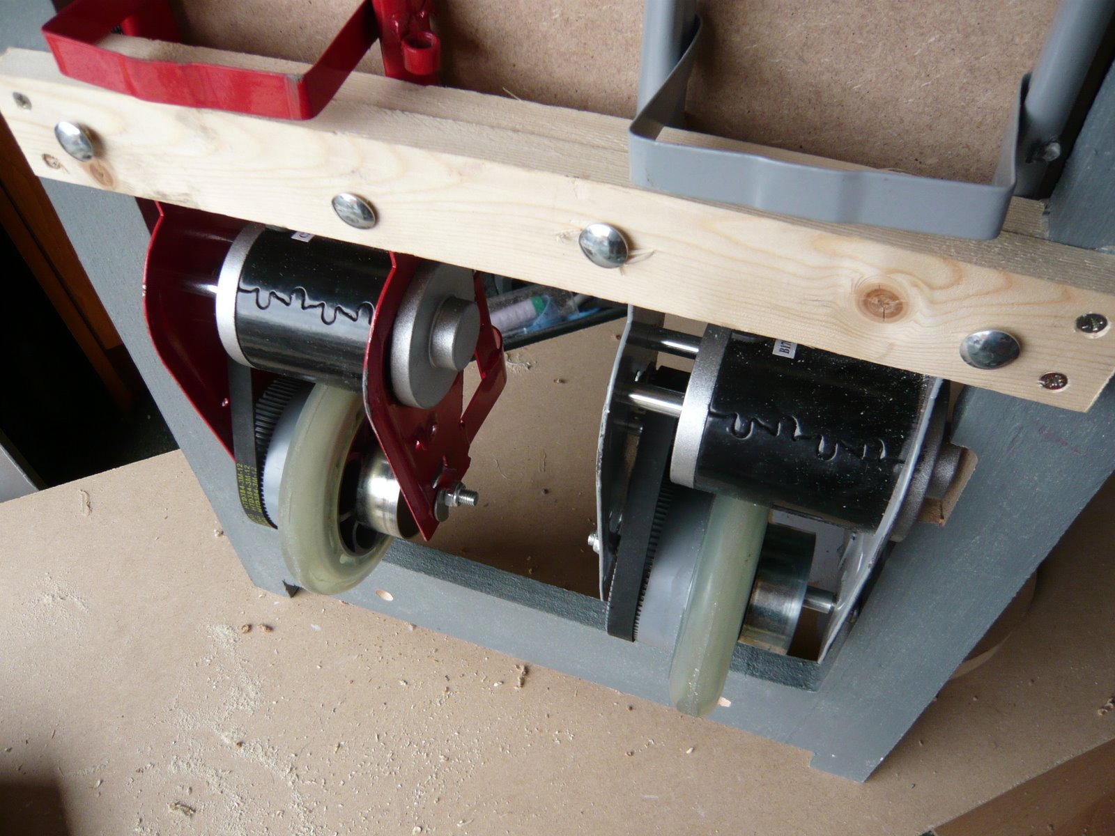 Take two £60 electric scooters of Ebay, add an angle grinder and a few hours work and before you know it you have a Droid/K9 drive system. The old caster will have a nice new in-line skate wheels added to make everything glide along nicely. For this build I have not even had to have build custom motor brackets, instead simply cut up the scooter frames and just bolt them in, simplicity itself.