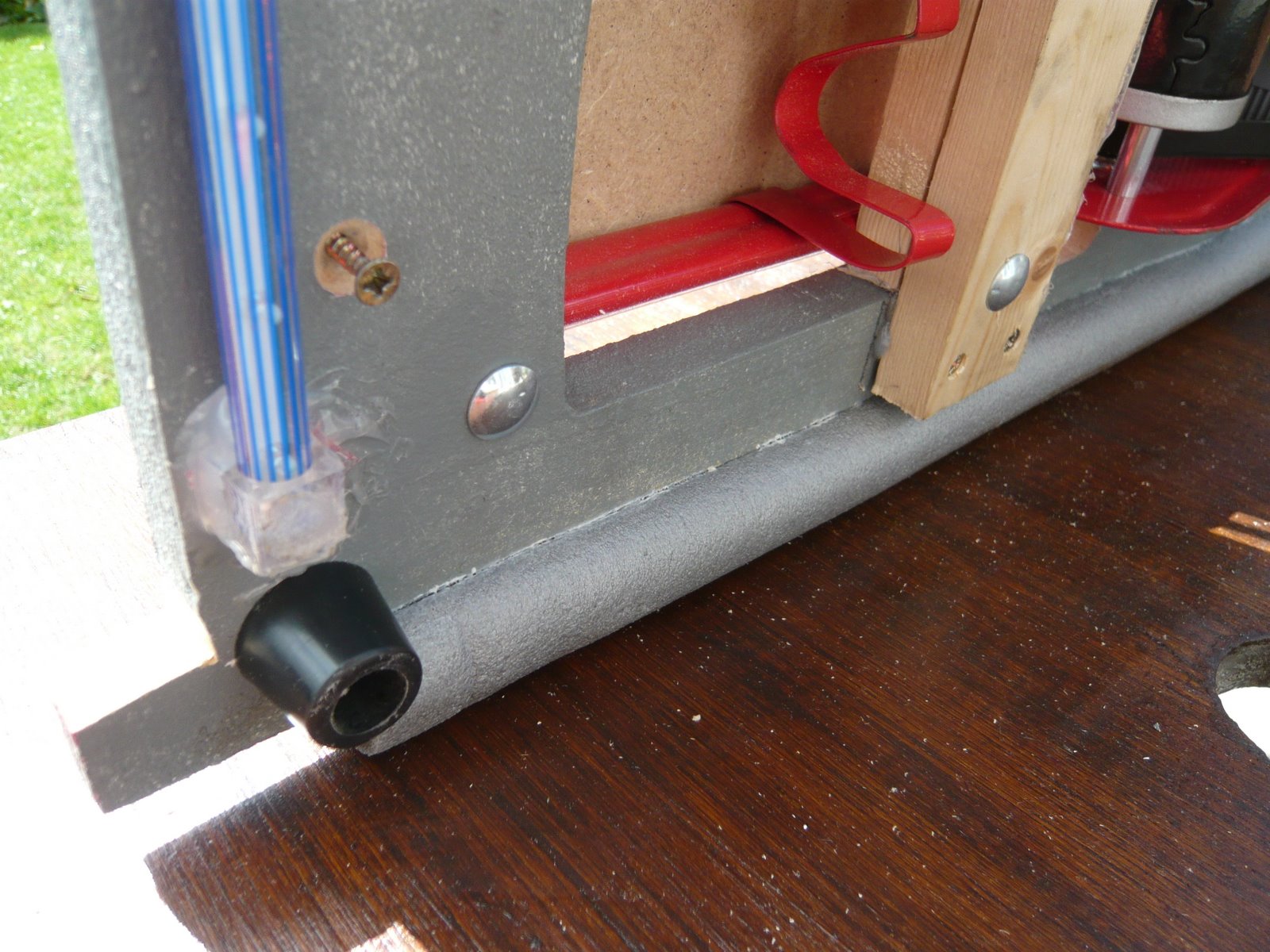 K9 now has his own solar charging system like Emy. The two large panels charge the batteries fairly quickly even in low light conditions. Other things that have been added are the for corner sliders. Because the new 24v power system is so powerful considering the relative low weight of the build I have fitted these sliders to protect the body work from tips and wheelies. The smaller real wheelie caster has been removed because it was getting in the way when K9 moved across rought surfaces. As for rough surfaces, he is now more than capable of traveling over grass and rough ground due to a slightly higher ground clearance and the extra torque from the higher voltage motors, check out the ofroad video below. I also managed to find some better handles, which, even though they are not completely original do look much better than the round ones.