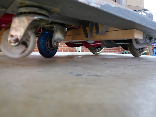 The plan was for the drive system was to have the drive wheels at the front allowing K9 to be able to move over rough ground however after buildinbg this drive tray with the drive wheels at the front and the caster at the back getting K9 to run in a straight line was almost impossible. Even though I had spent loads of time building this drive tray I have decided to change the design and put the drive wheels at the back. I will lose the ability to move over rough ground but to be honest if I dont chage the design I will spend more time repairing K9 due to crashing due to poor control.