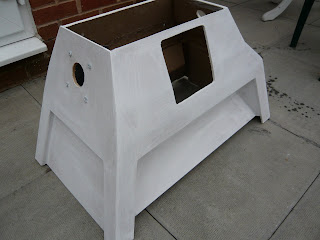 I thought I would give the parts I have nearly completed a coat of primer. This is my trusty exterior textured paint/filler. This paint is brilliant as it also acts as a filler so when I start sanding it will give me a perfect surface to add paint to. There is still along way until I will be applying the final top coat but I am happy with the work completed after the first weekend