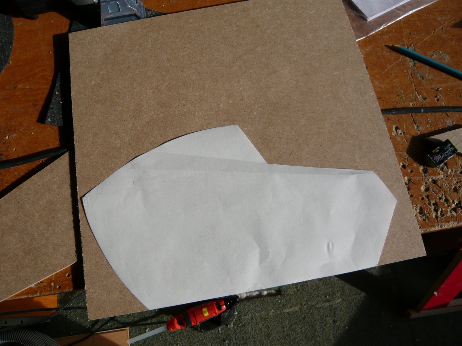 Again the measurements for the head where very hard to find and when I did find them they were very hard to read. For refernce I had downloaded loads of head pictures and virtually every one looked slightly different. The shape I decided on certainly looks the best although at the moment it does look a bit fat.It is made from 6mm MDF again and glued with hot glue. Each sections is added creating the curve. The surface will eventually be filled and sanded so it will look completely smooth.