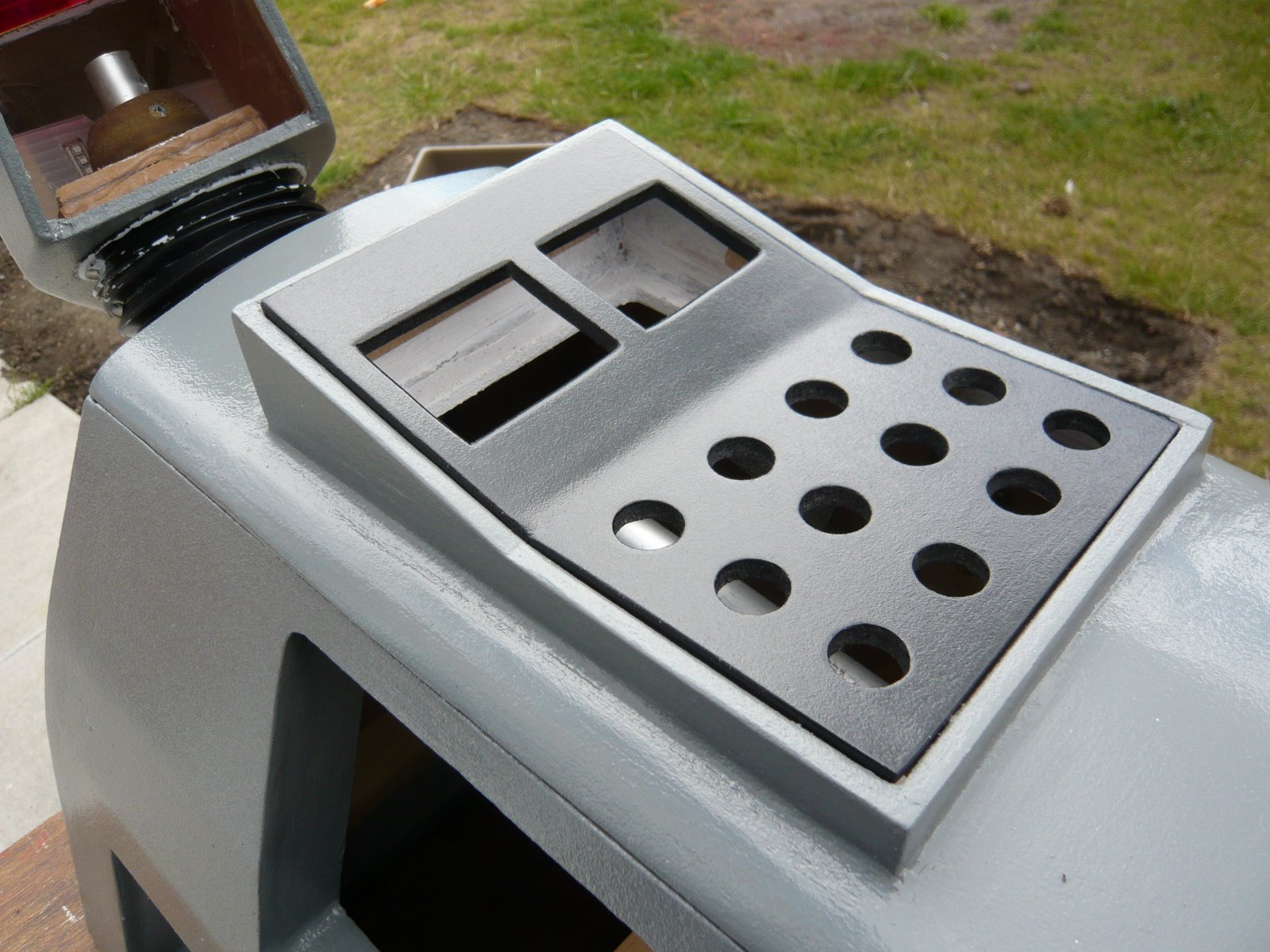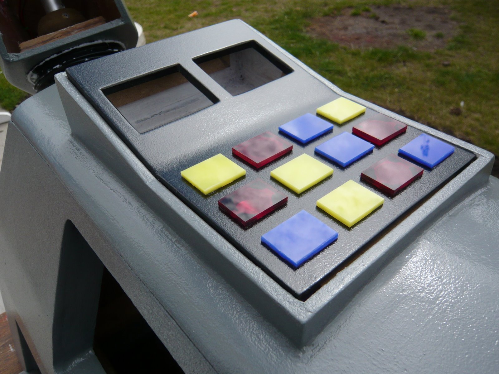 I decided not to fit switches to the top panel, first of all because I could not find any the correct size and second because if the switches are real and opperate important parts of the robot small children will cause untold missery pressing them.