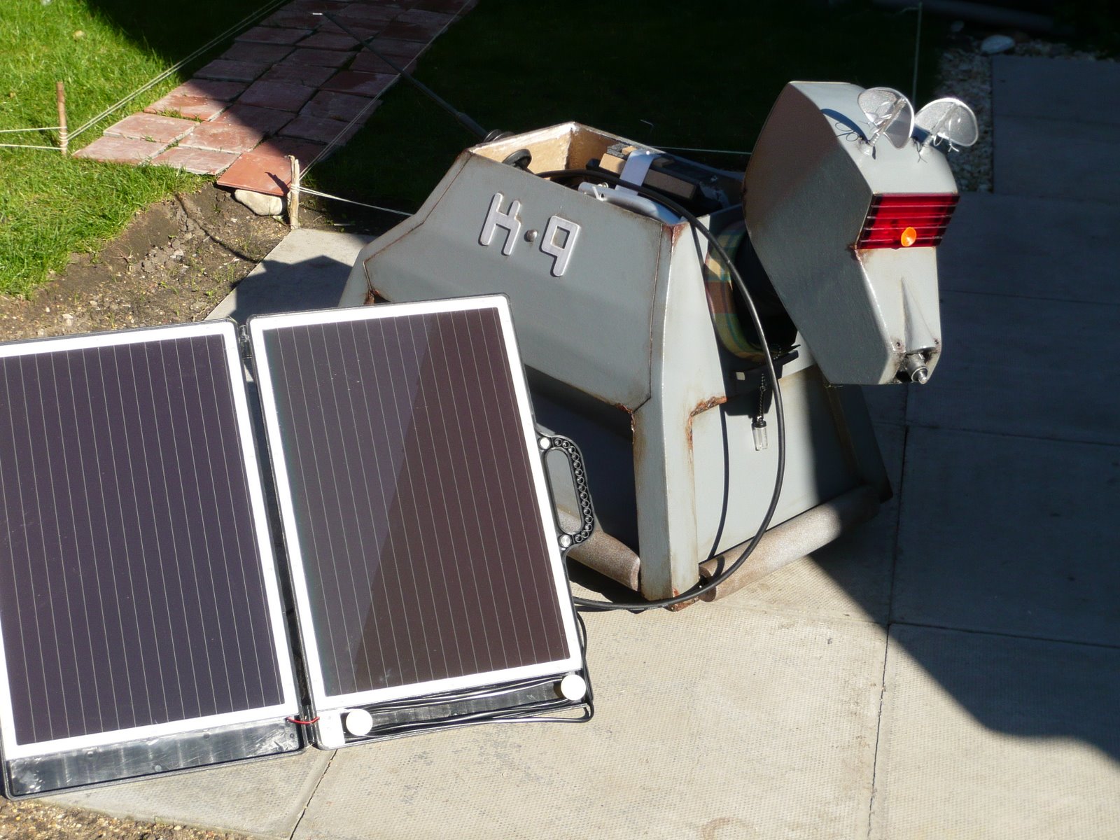 K9 now has his own solar charging system like Emy. The two large panels charge the batteries fairly quickly even in low light conditions. Other things that have been added are the for corner sliders. Because the new 24v power system is so powerful considering the relative low weight of the build I have fitted these sliders to protect the body work from tips and wheelies. The smaller real wheelie caster has been removed because it was getting in the way when K9 moved across rought surfaces. As for rough surfaces, he is now more than capable of traveling over grass and rough ground due to a slightly higher ground clearance and the extra torque from the higher voltage motors, check out the ofroad video below. I also managed to find some better handles, which, even though they are not completely original do look much better than the round ones.